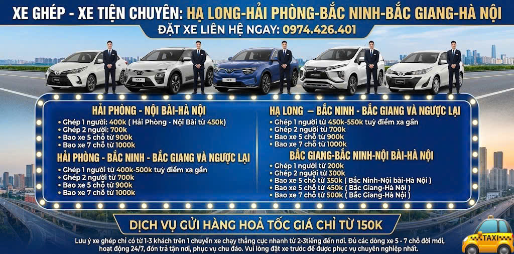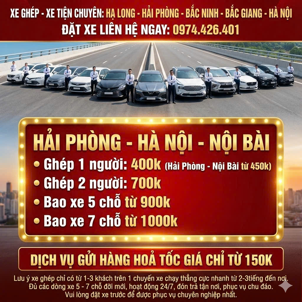 Xe Ghép Tiện Chuyến Hải Phòng – Hà Nội xin trân trọng gửi tới Quý khách hàng lời chúc sức khỏe và thành đạt trong cuộc sống để được dịch vụ taxi tốt quý khách vui lòng liên hệ: 0974426401 Xe Ghép Tiện Chuyến Hải Phòng – Hà Nội cung cấp dịch vụ xe ghép Hải Phòng – Hà Nội, xe đi các tỉnh, phục vụ 24/7, dịch vụ xe taxi sân bay, taxi đường dài trọn gói giá rẻ.